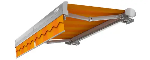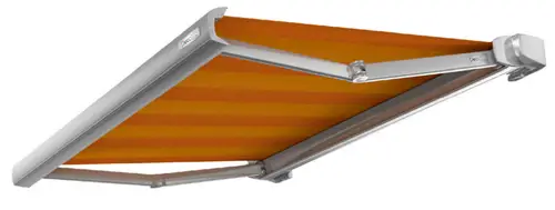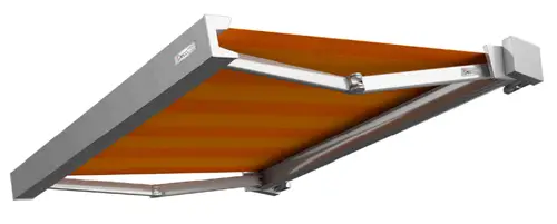 У кассетной локтевой маркизы механизм открывания полностью закрыт, что позволяет устанавливать изделие под открытым небом. Электропривод системы управляется бесшумно и автоматически.