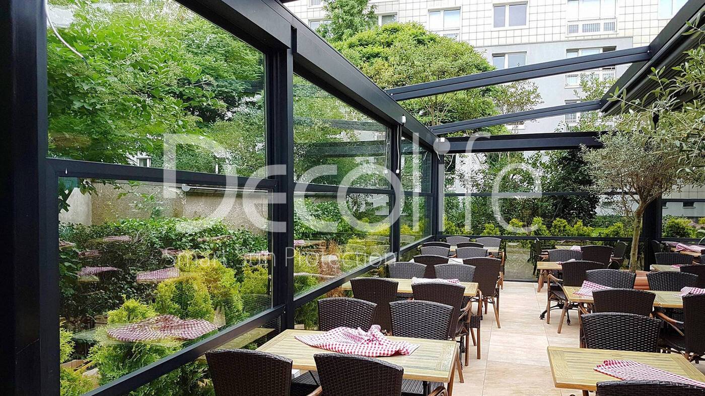 Рассыпчатый свет, проникающий сквозь стеклянные стены и создающий игру теней и отражений, наполняет пространство мягкими красками и уютом. Пергола и остекление кафе или ресторана становятся объединенным произведением искусства, подарившим гостям возможность окунуться в мир вкусов и красоты в один момент.