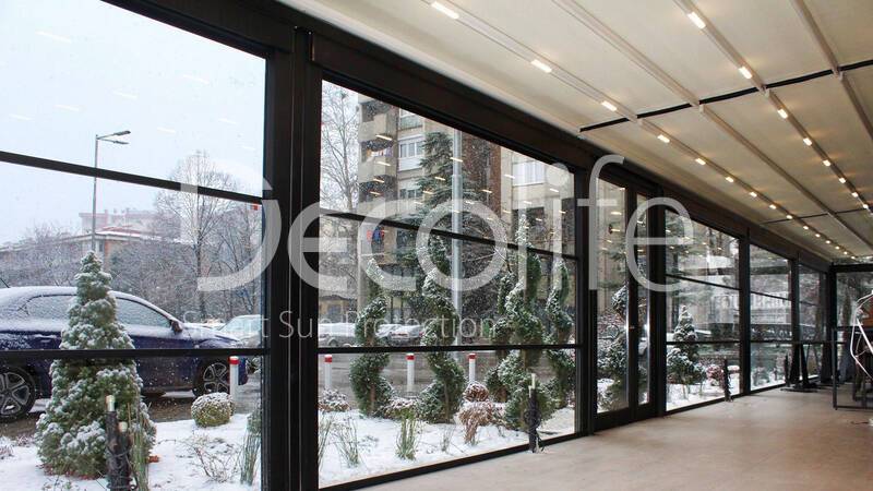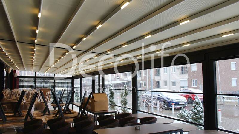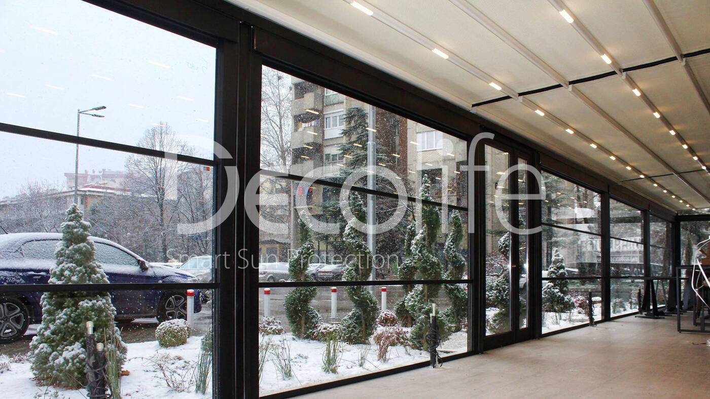 Пергола Decolife Basic&Pro New + гильотинные окна W600 купить для кафе и ресторана