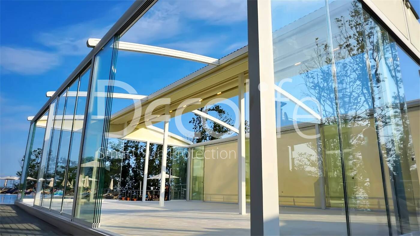 Остекление кафе и ресторанов, будучи важной частью перголы, открывает перед нами гильотинные и раздвижные системы. Изысканный дизайн, блистательно сочетающийся с функциональностью, дразняет воображение своей обаятельной возможностью преобразить пространство в завораживающее эстетическое произведение искусства.
