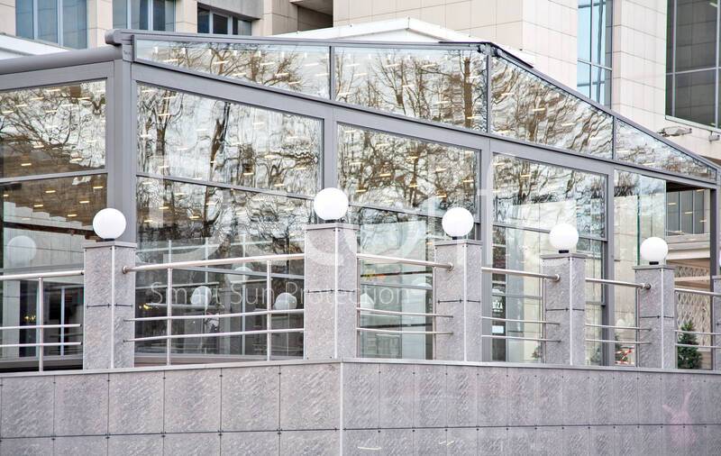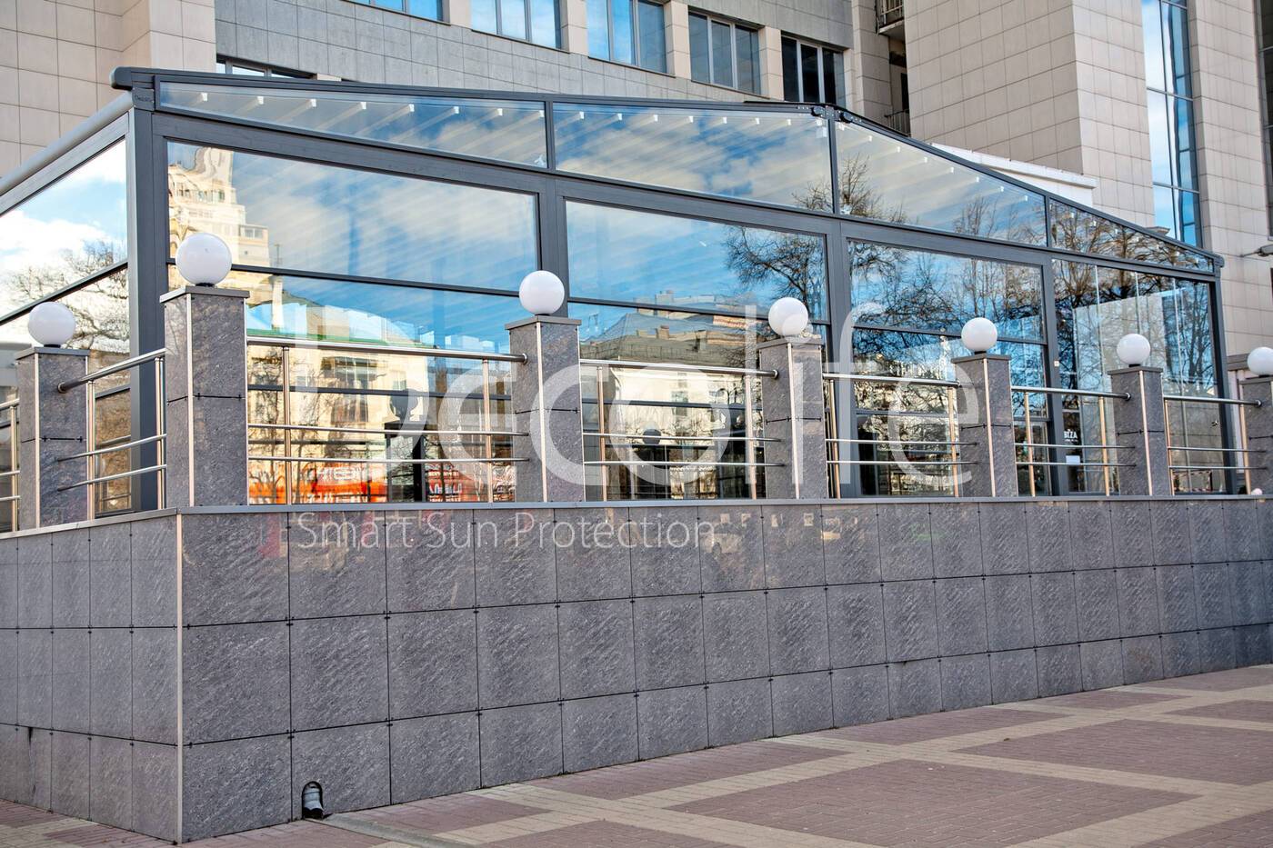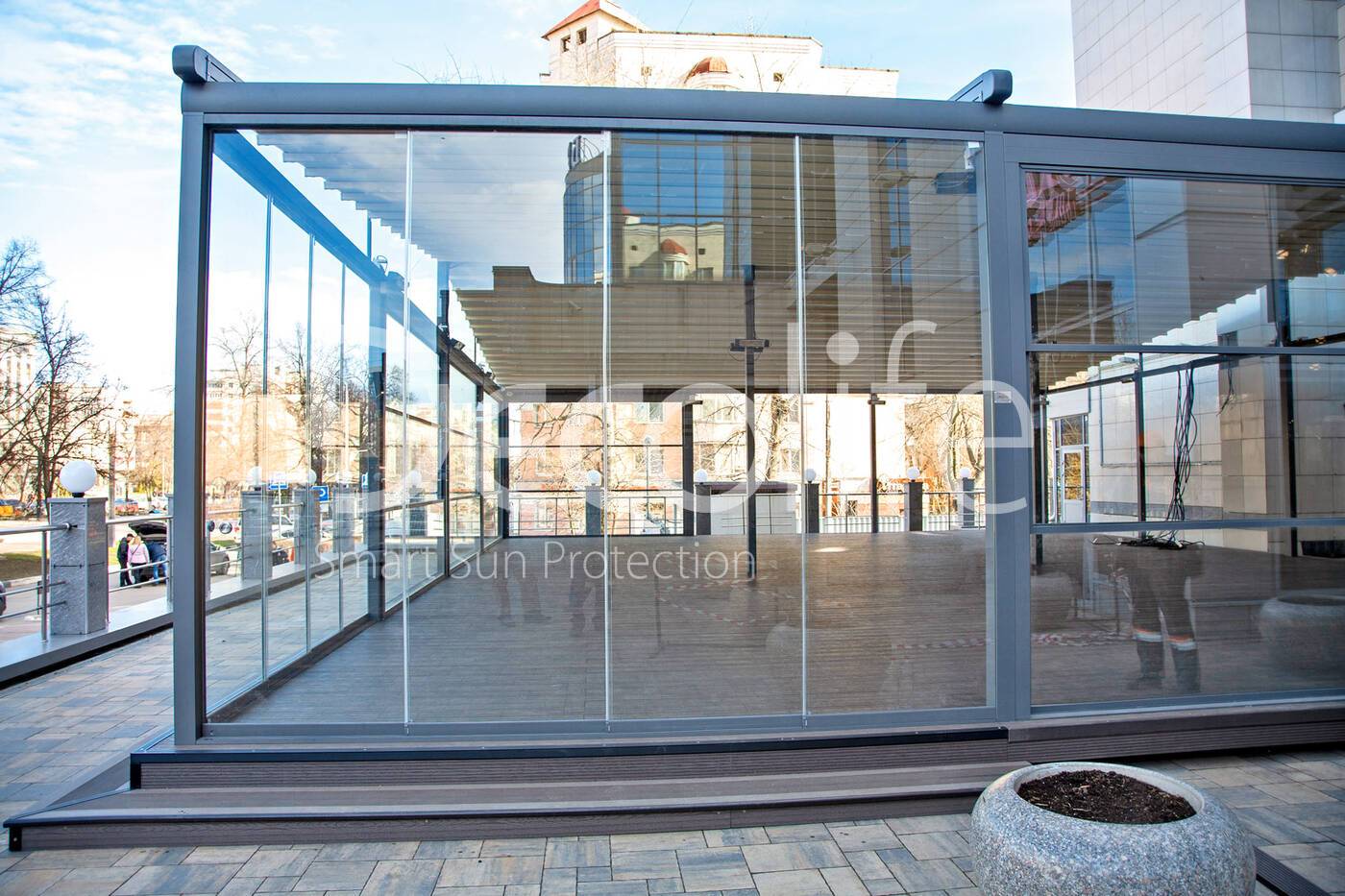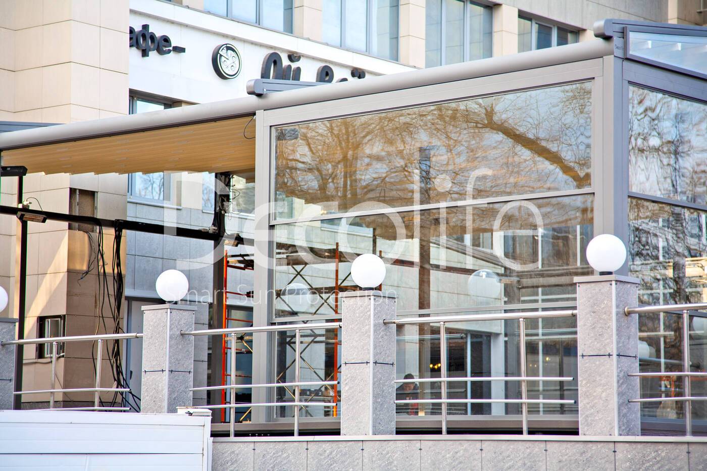 Терраса, окруженная прозрачными стенами остекления, призвана придать элегантный шарм ресторану и кафе, позволяя посетителям наслаждаться живописными пейзажами даже в теплое время года. Раздвижное остекление позволяет с легкостью регулировать уровень воздуха и света, создавая комфортные условия для бесед и вечерних ужинов под лазурным небом.