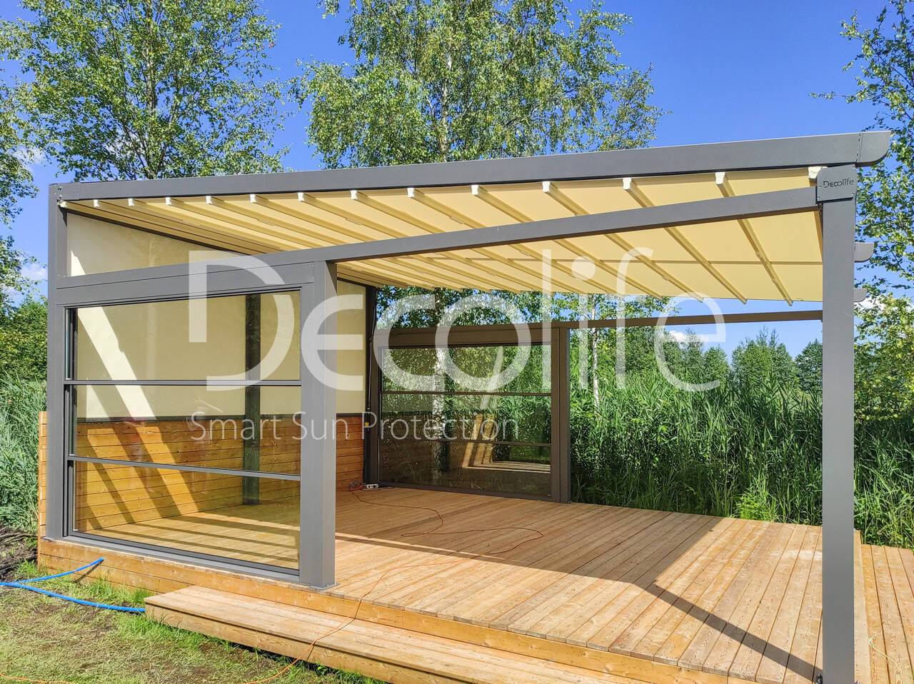 Однако, пергола – это не просто защита от природных явлений. С возможностью гильотинного или подъемного остекления, она превращается в укрытие, которое может быть адаптировано под разные потребности. Гильотинное остекление добавляет функциональности, сохраняя при этом манящий вид окружающего ландшафта. А подъемное остекление придает уединенному уголку необычайную гибкость, позволяя наслаждаться атмосферой в любое время года.