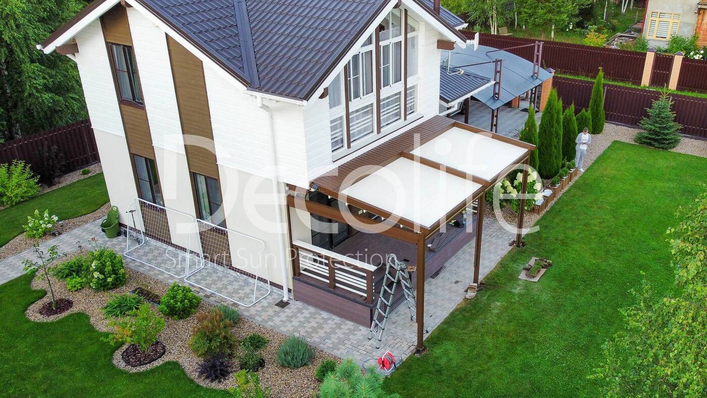 Замечательной особенностью перголы с вертикальной маркизой является её способность гармонировать с различными стилями архитектуры. Она великолепно сочетается как с современными, энергичными домами, так и с классическими, выдающимися по своей элегантности постройками, придавая им дополнительную изюминку и стиль.
