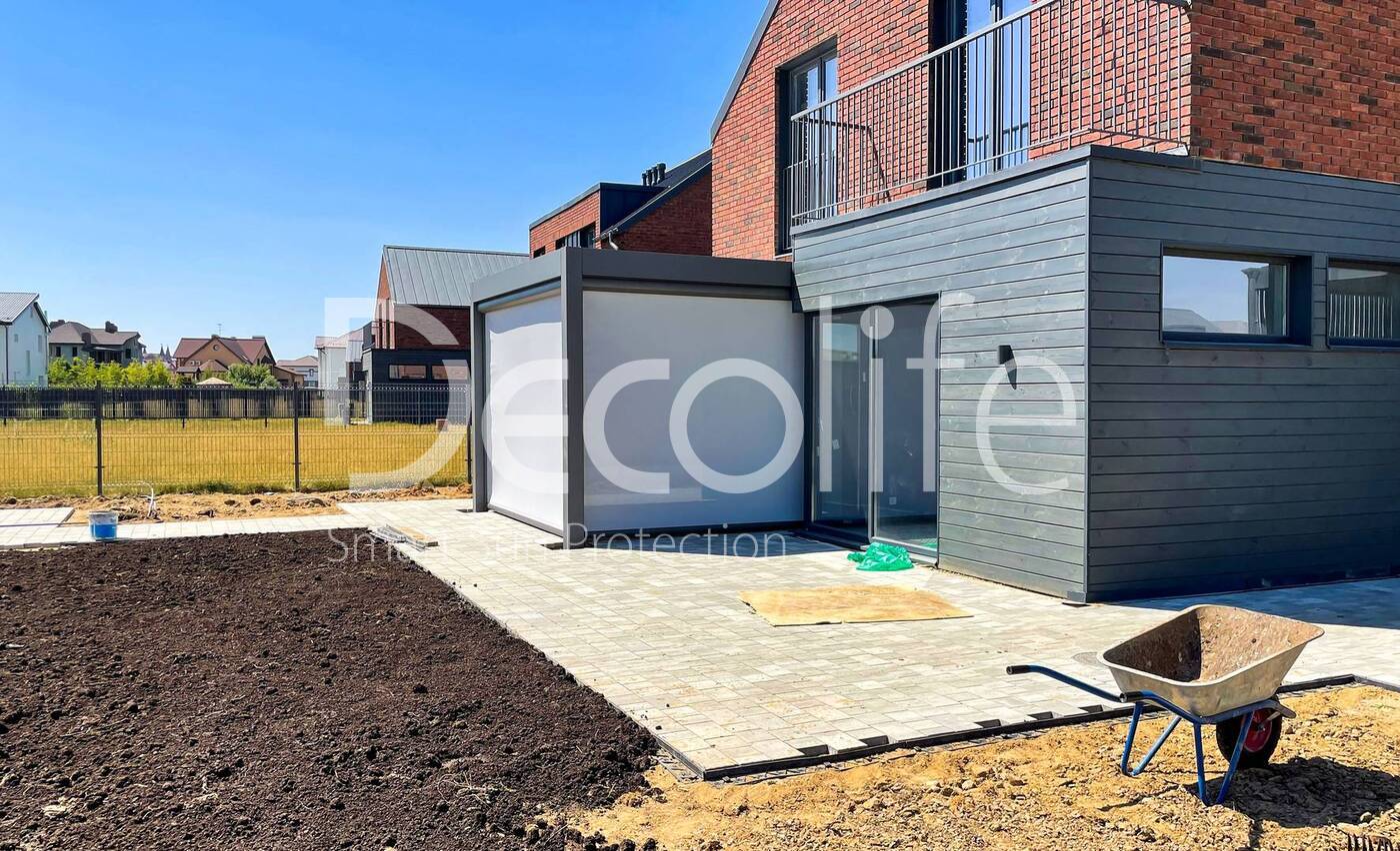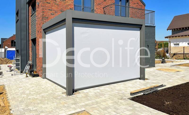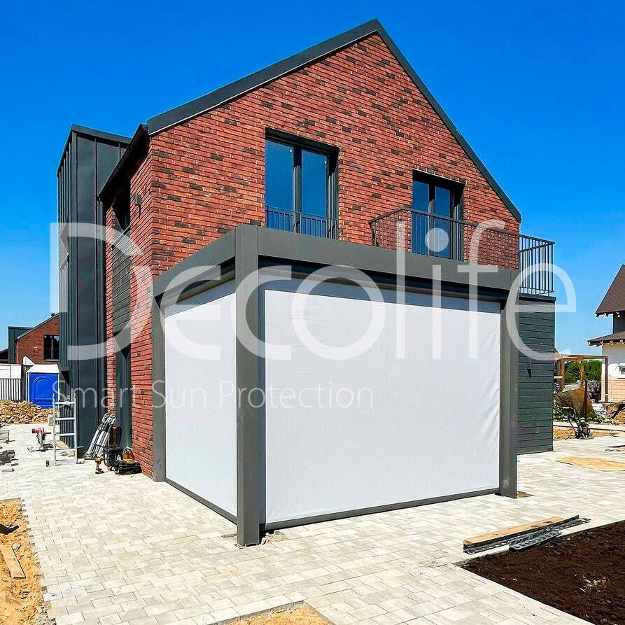 Шикарный и элегантный вид перголы с вертикальной маркизой, выполненной по инновационной zip системе, подчеркивает не только привлекательность самой конструкции, но и олицетворяет изысканность и вкус владельца. Это выразительный штрих, придающий облику дома неповторимый шарм и индивидуальность.