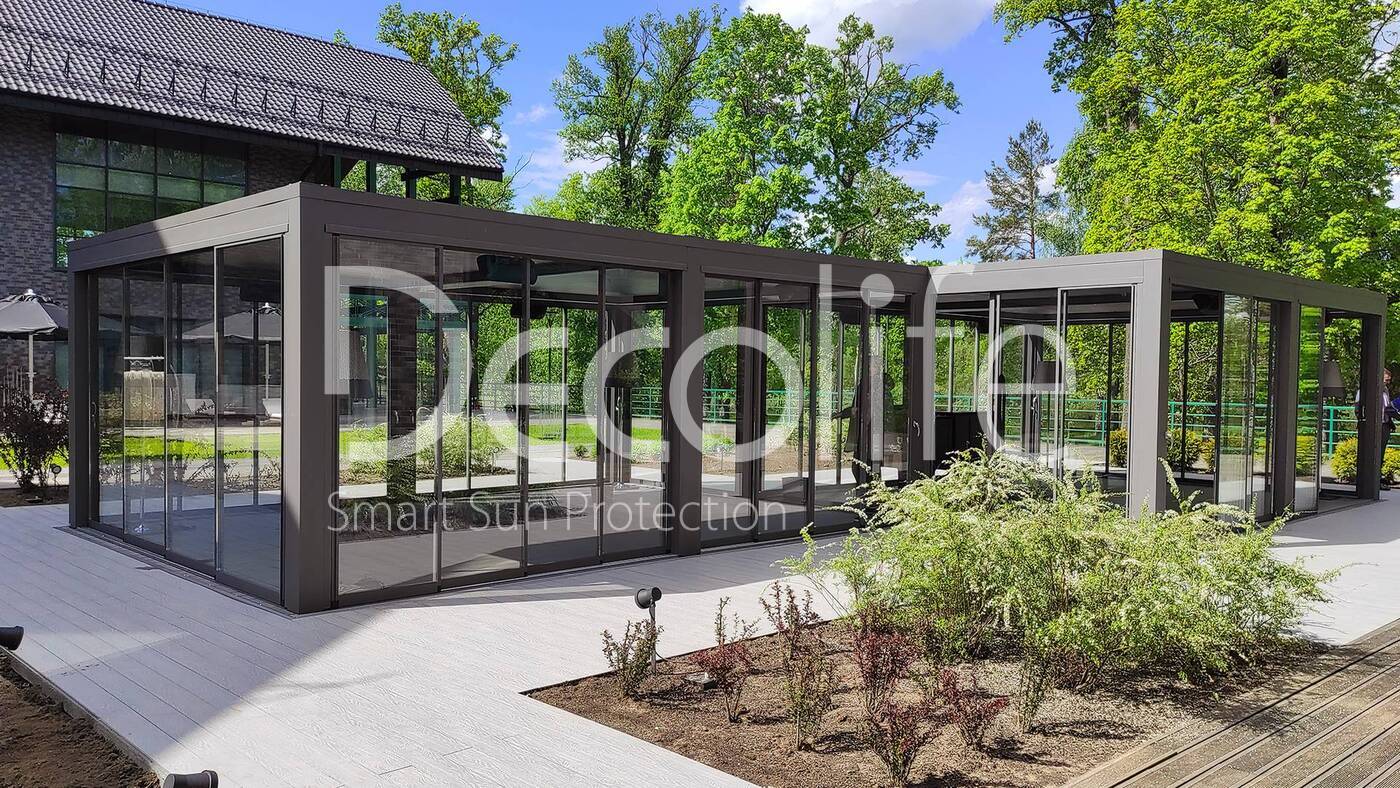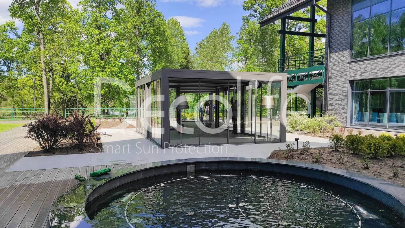 Пергола биоклиматическая Decolife B500-25П + слайдерное остекление S300 купить | Москва | 367
