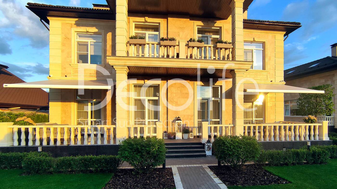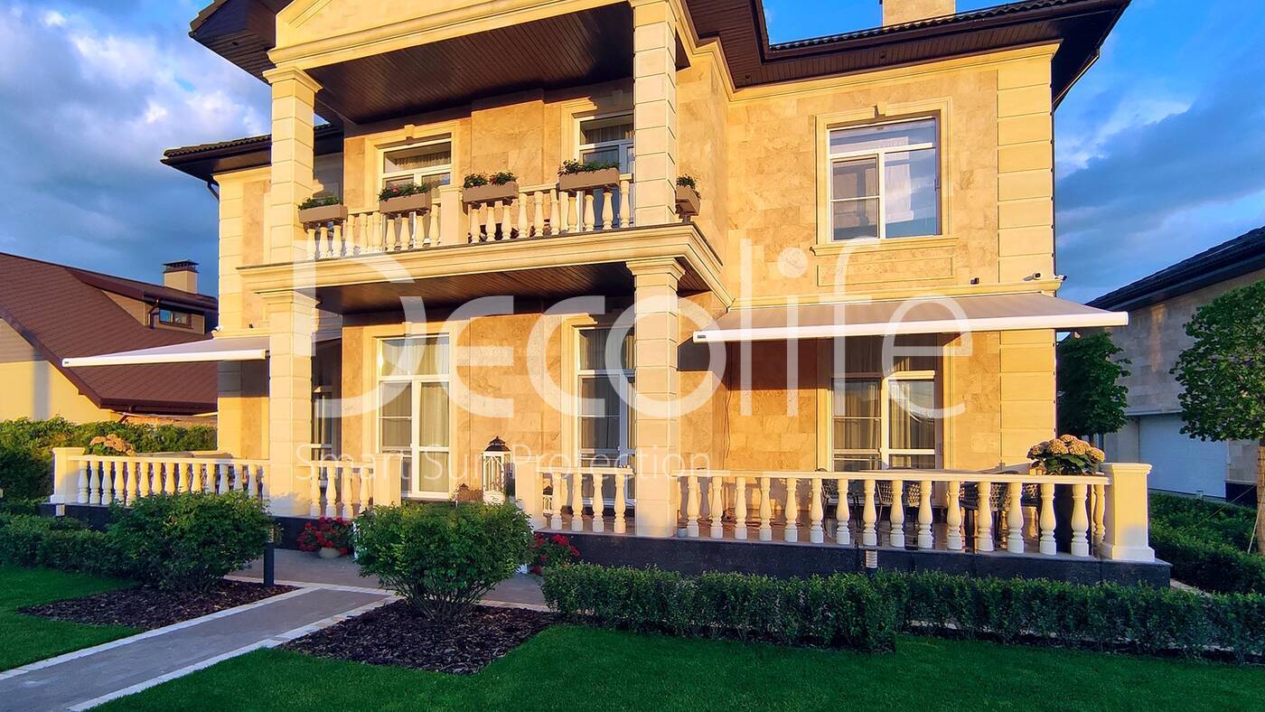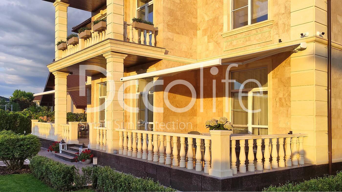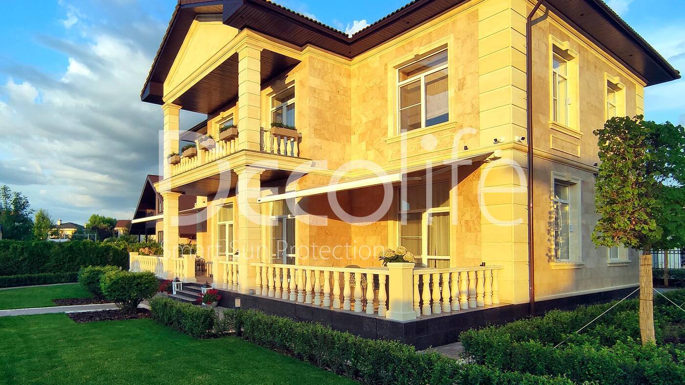 Кассетная маркиза, сочетающая в себе практичность и элегантность, обеспечивает не только защиту от солнца, но и сохраняет чистоту ткани за счет специального кассетного механизма. Этот вариант прекрасно подходит для загородного дома или коттеджа, добавляя стиля и комфорта в обстановку.