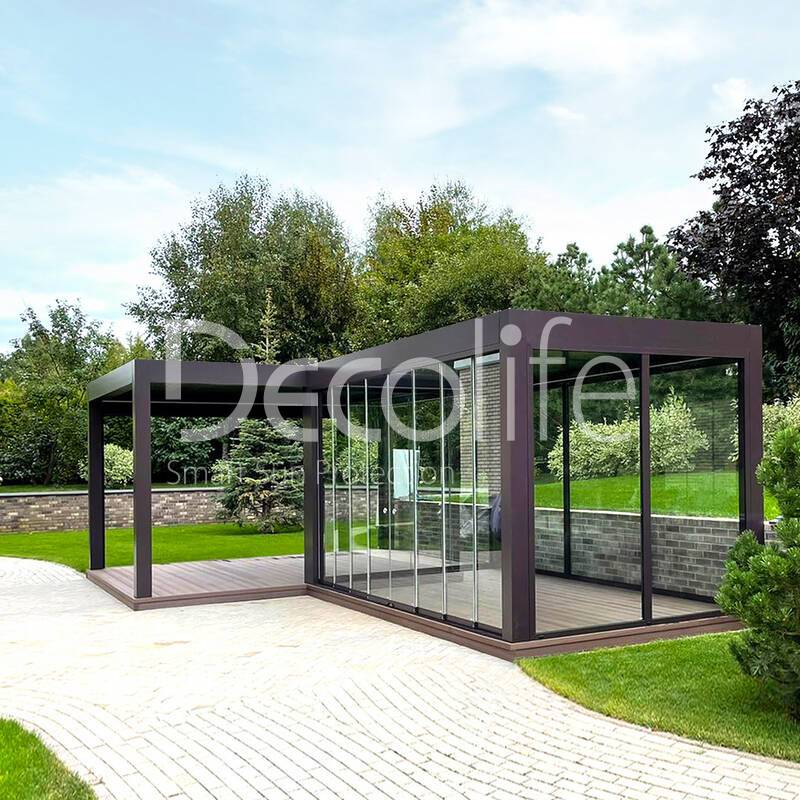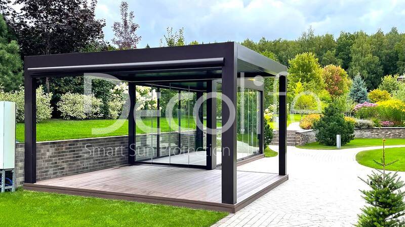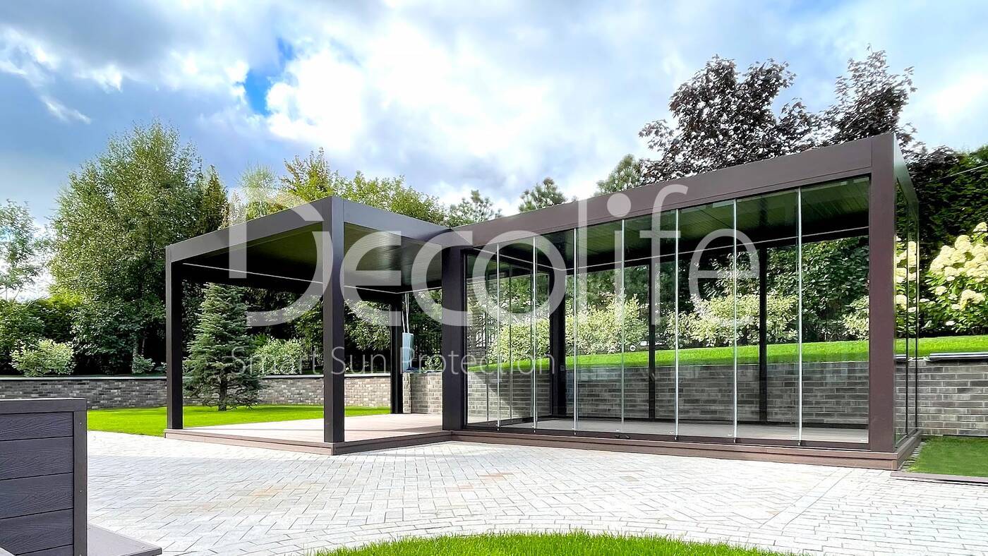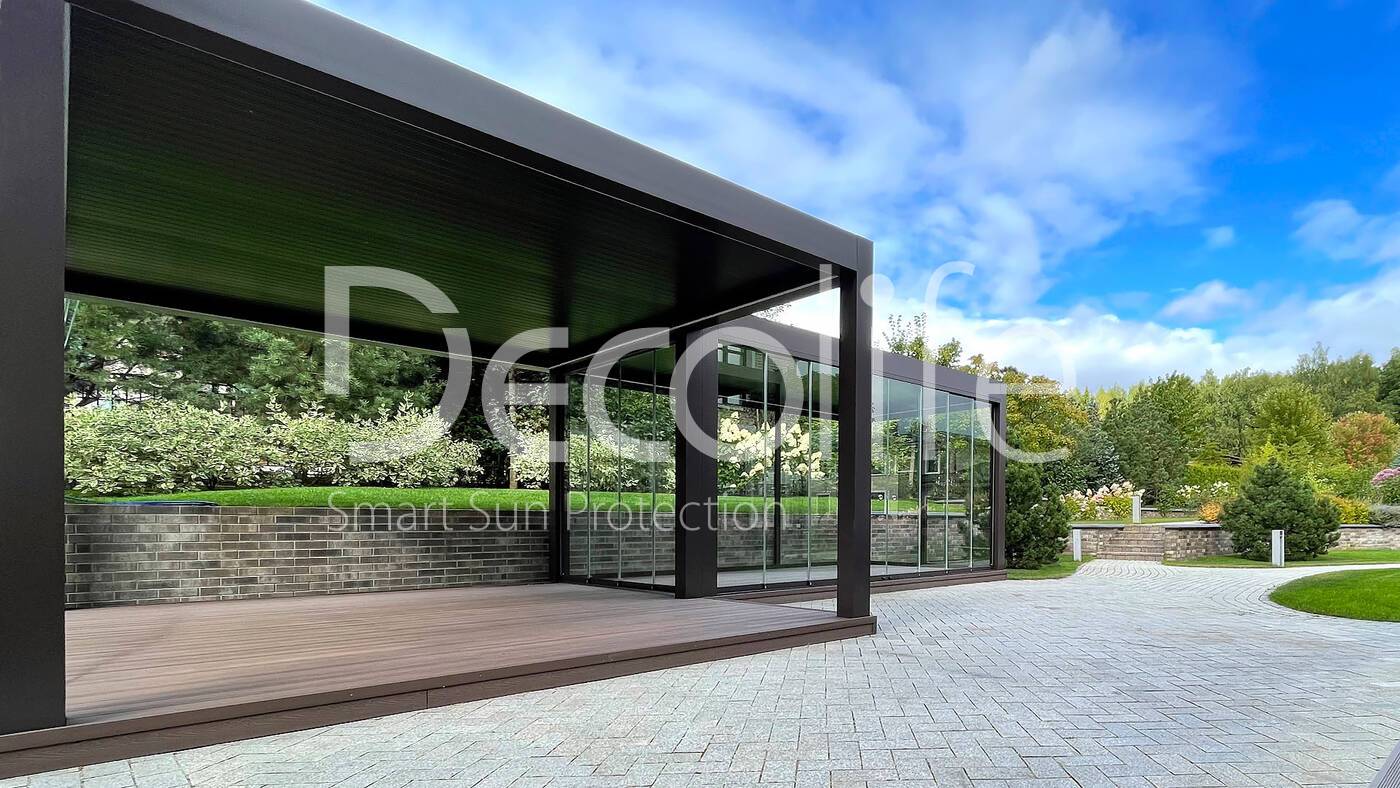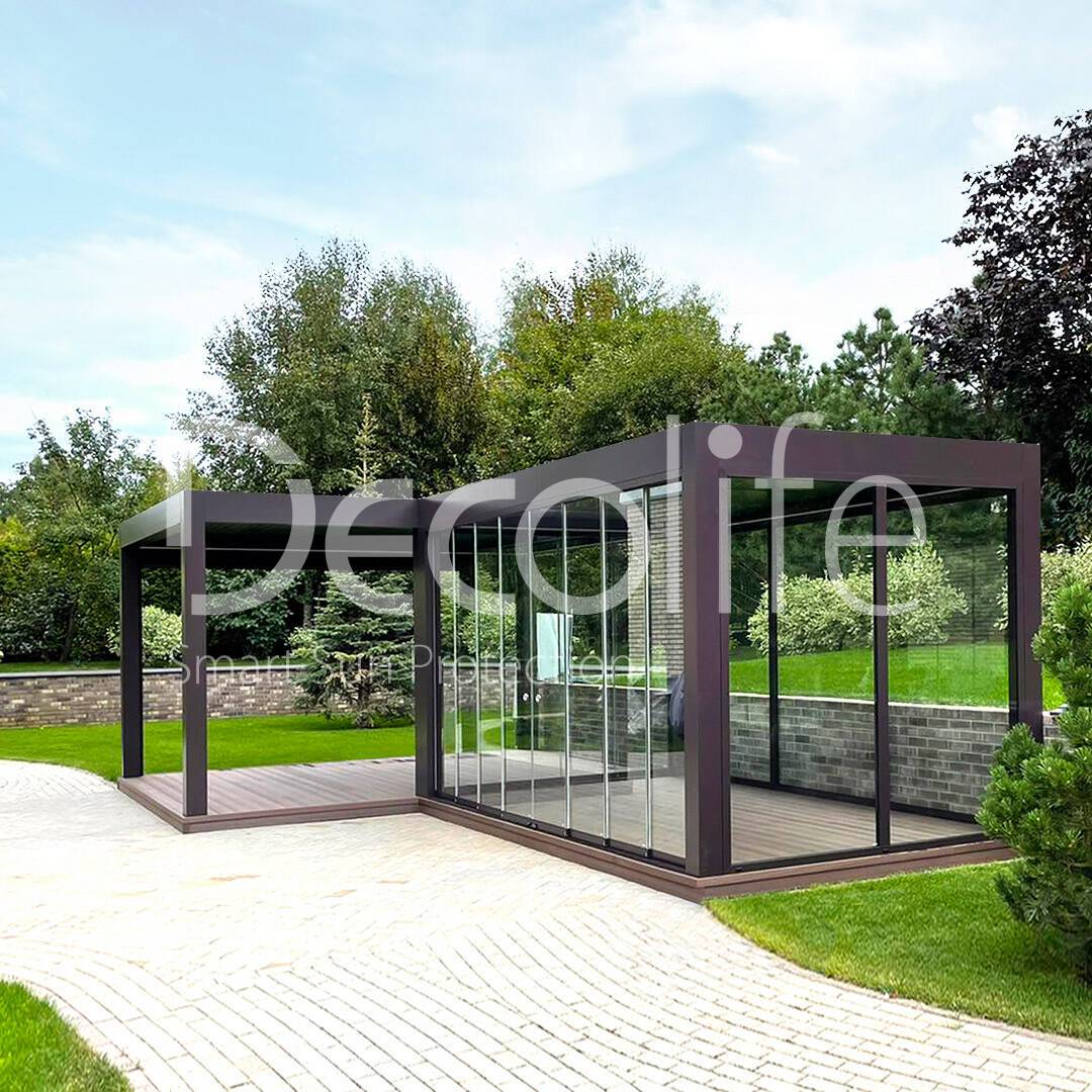 Раздвижные конструкции перголы позволяют свободно играть светом и пространством, обеспечивая мягкую гармонию между интерьером и экстерьером. Раздвижные окна и двери стеклопакет добавляют воздушности и легкости, делая перголу пригодной для использования в любое время года и в любую погоду.