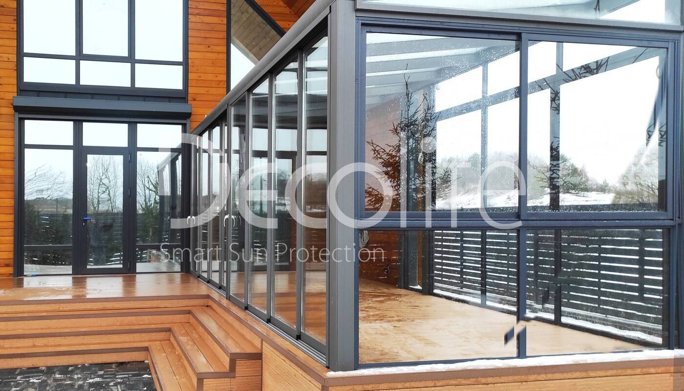 Дополнительным преимуществом может стать безрамное раздвижное остекление, создающее ощущение единства с природой. Раздвижные конструкции, такие как окна и двери стеклопакет, придают перголе непревзойденный вид и позволяют проникать внутрь помещения потокам света и тепла, делая пространство более гармоничным и уютным.