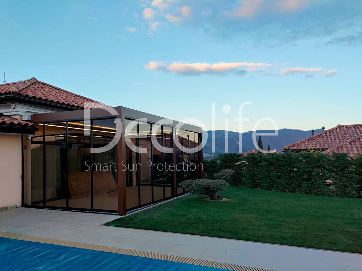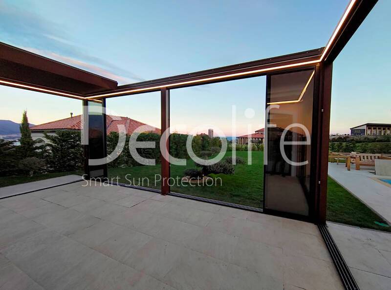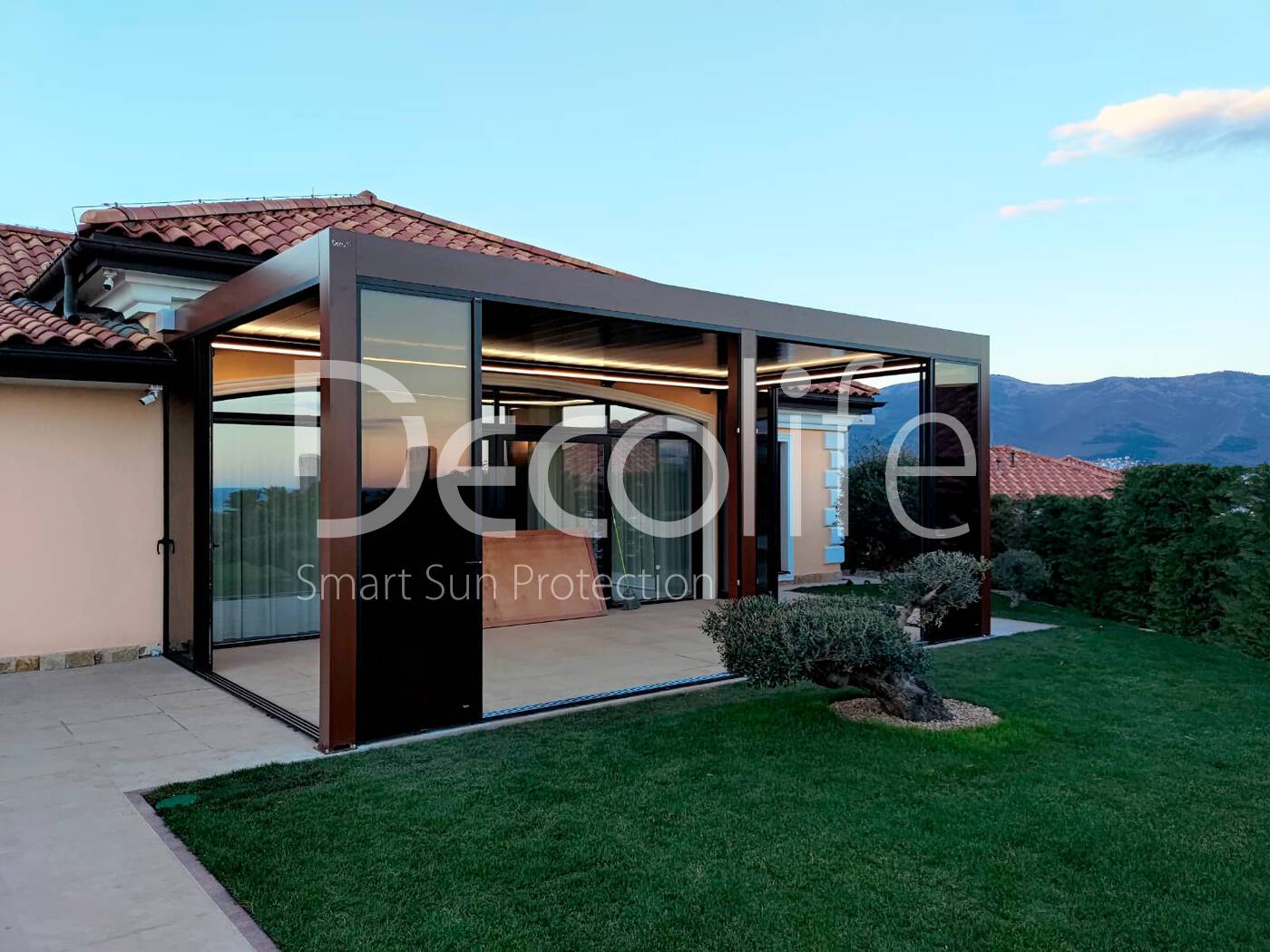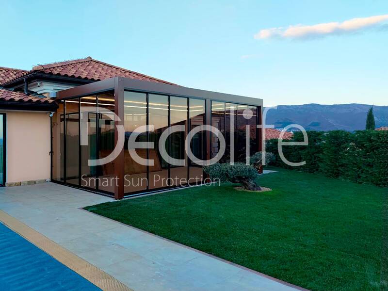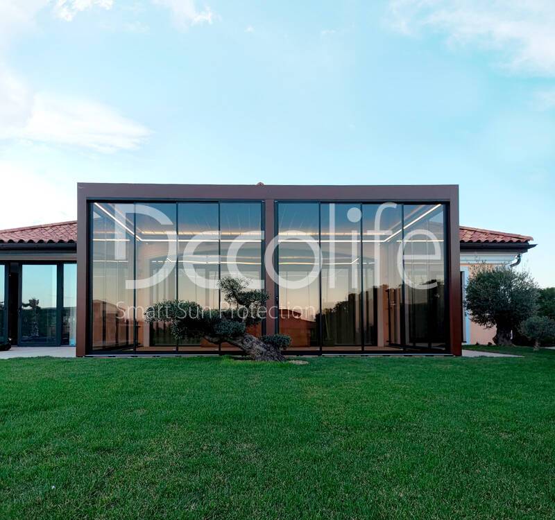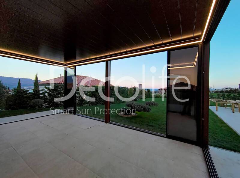 Сочетание прочности металлической конструкции, изысканности раздвижных окон и дверей стеклопакет с уникальным дизайном перголы создает изумительное сочетание функциональности и эстетики, придавая веранде или террасе изысканный и завершенный вид.