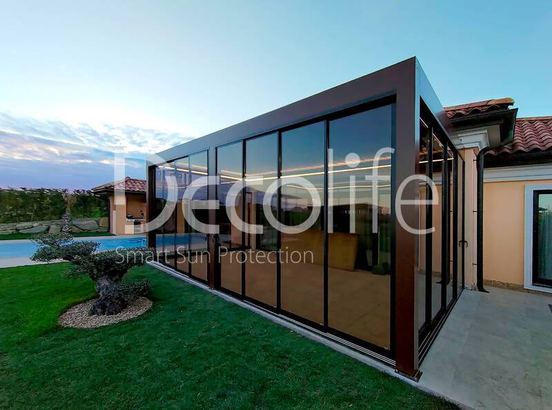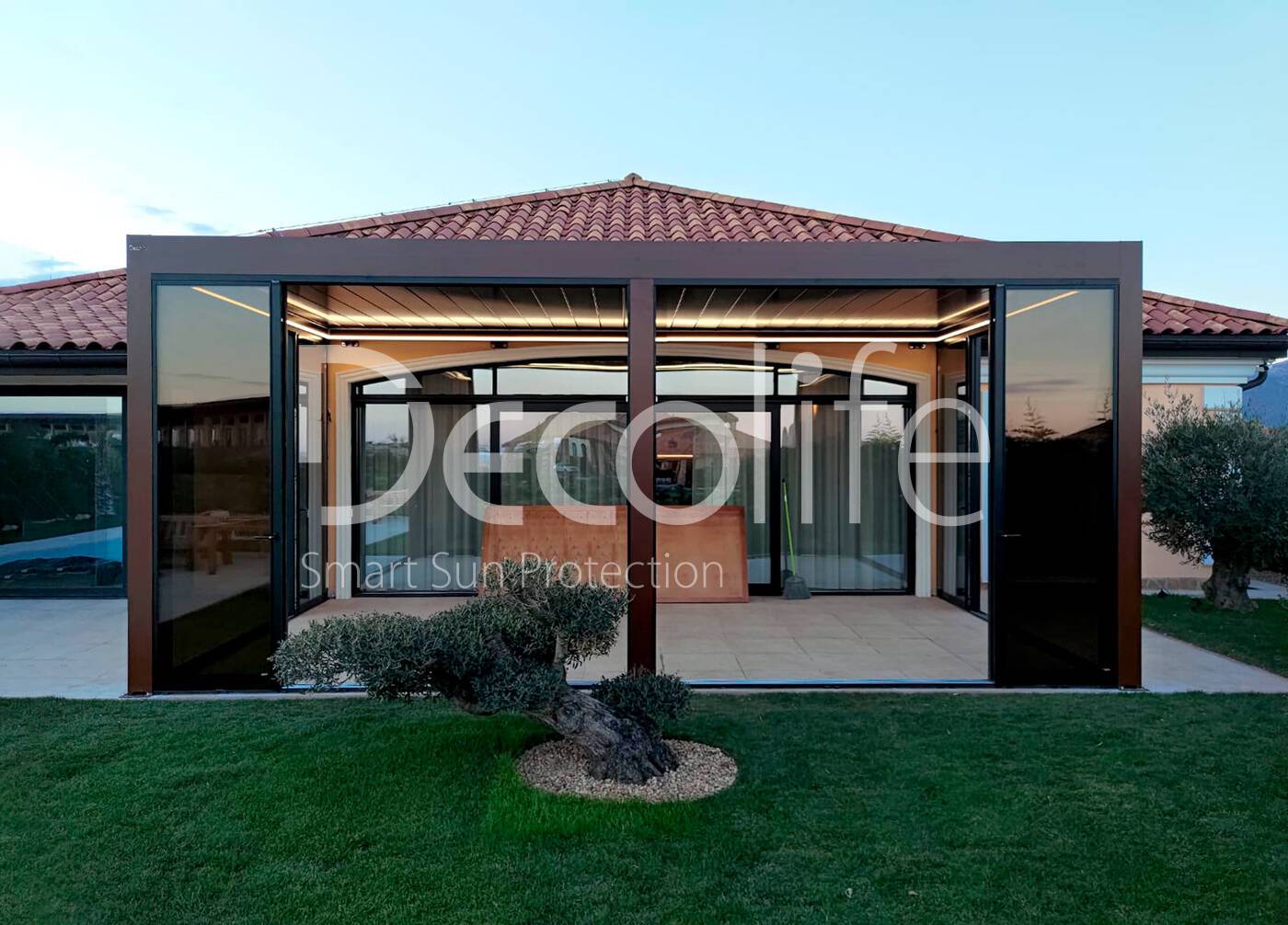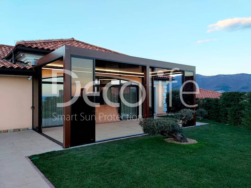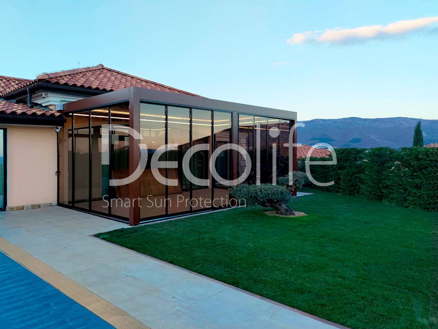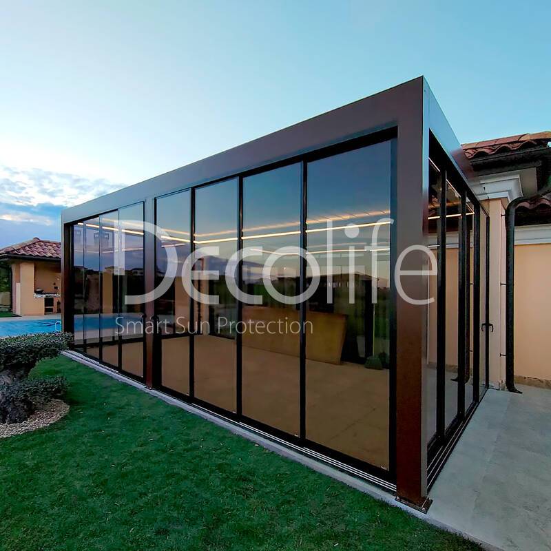 Сочетание прочности металлической конструкции, изысканности раздвижных окон и дверей стеклопакет с уникальным дизайном перголы создает изумительное сочетание функциональности и эстетики, придавая веранде или террасе изысканный и завершенный вид.