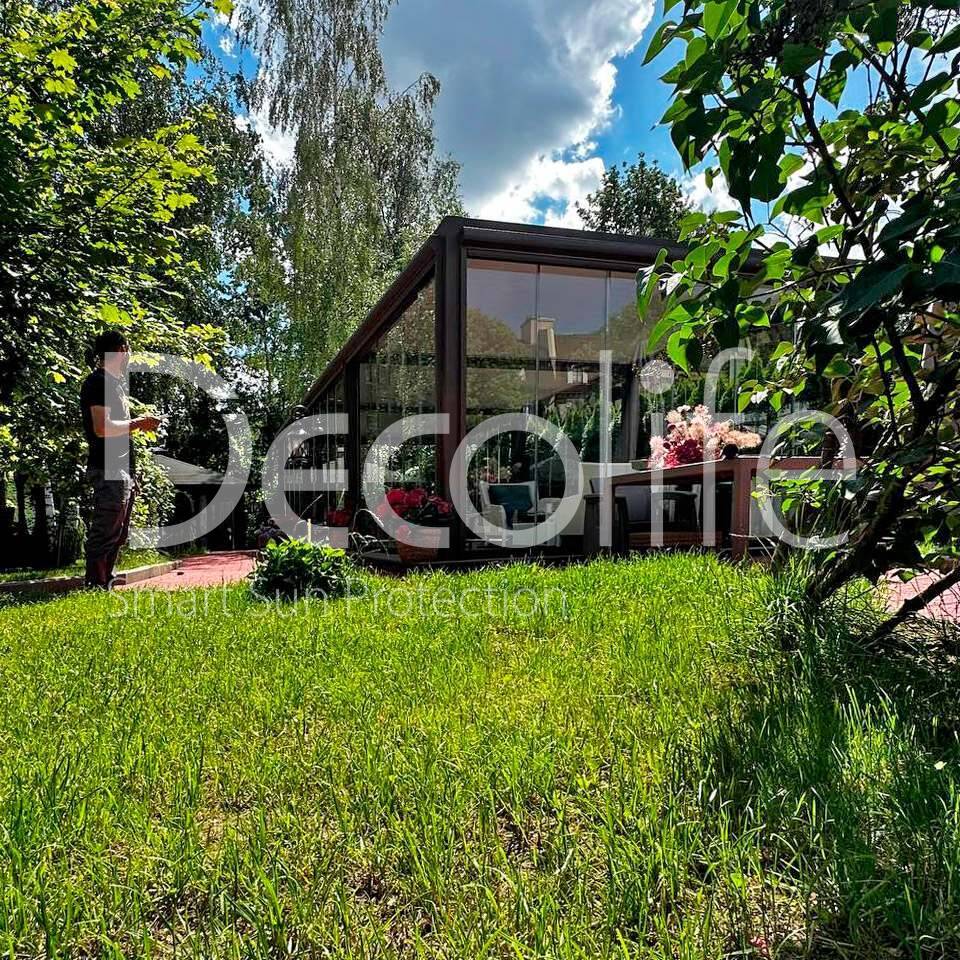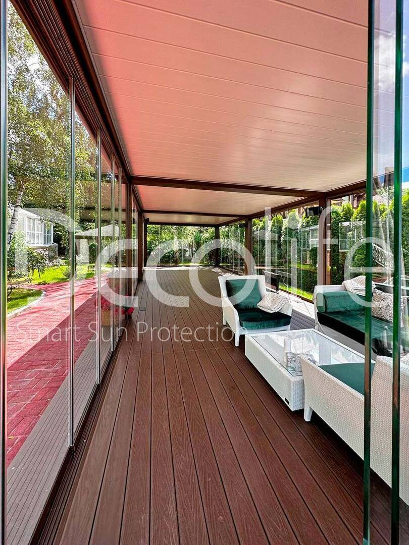Пергола Bioclimatic Decolife B500-25П + Раздвижное остекление S100 + Вертикальная система Zip 130 купить для террасы, дачи, пристроенная к дому | Москва | 477