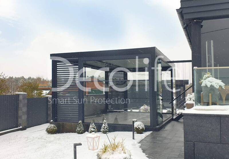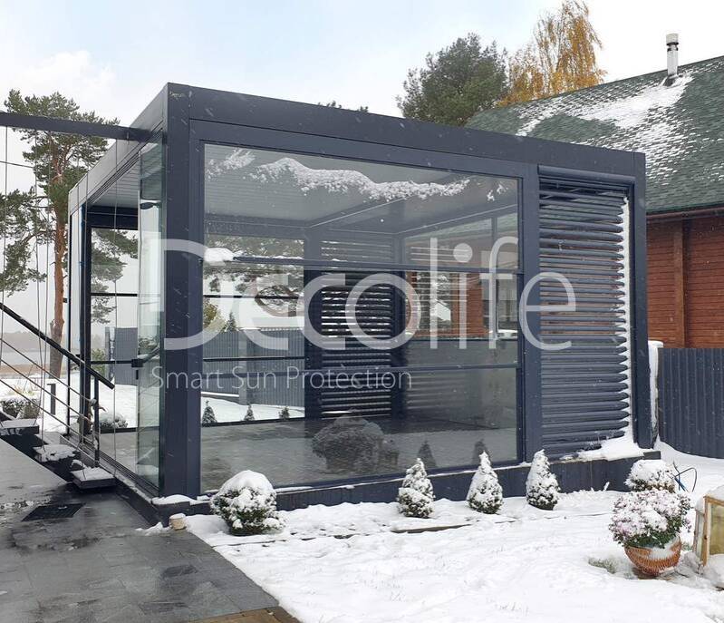 Раздвижное остекление и подъемное остекление – это дополнительные опции, которые могут быть интегрированы в биоклиматическую перголу от Decolife. Они позволяют создать полностью утепленное пространство, защищенное от ветра, дождя и холода. Такая функциональность делает перголу универсальной – она подходит как для летнего отдыха на свежем воздухе, так и для зимних вечеров в уютной атмосфере.