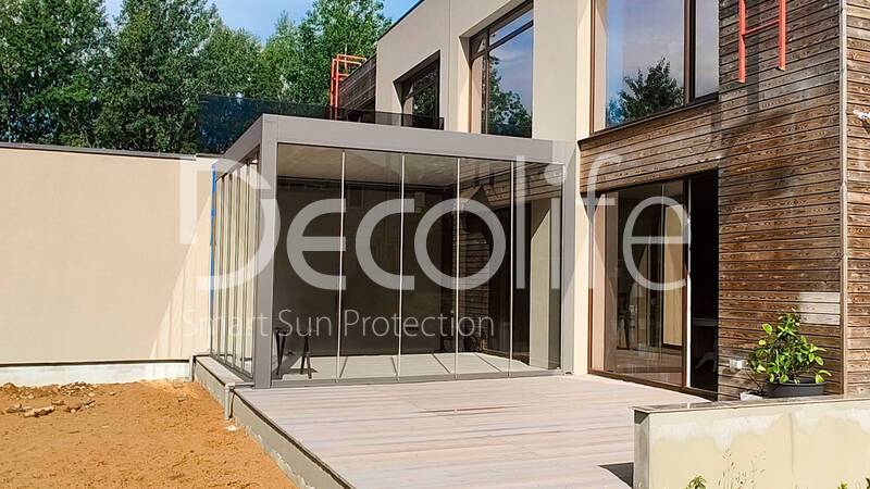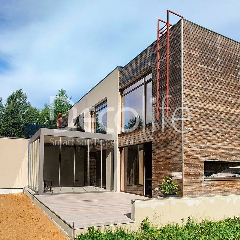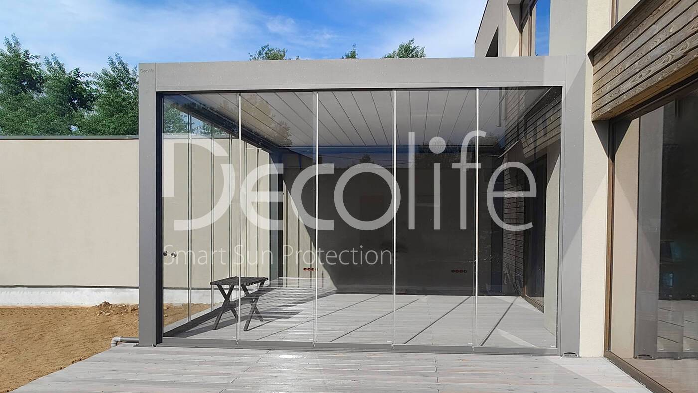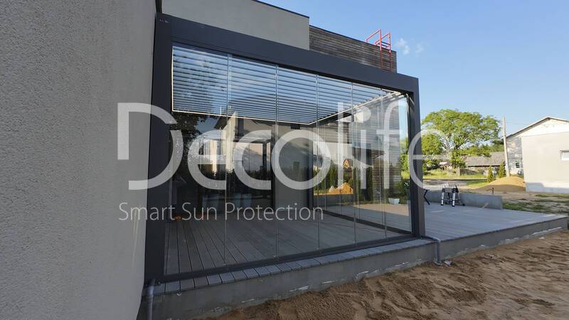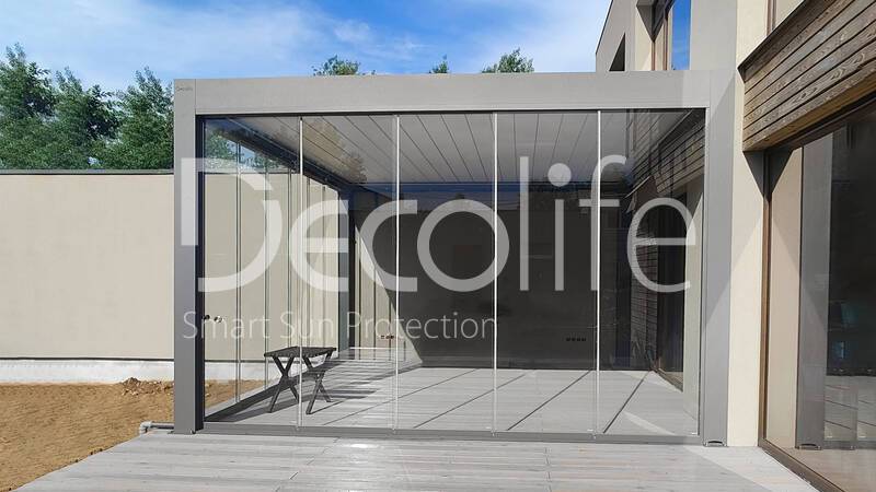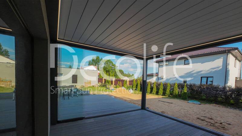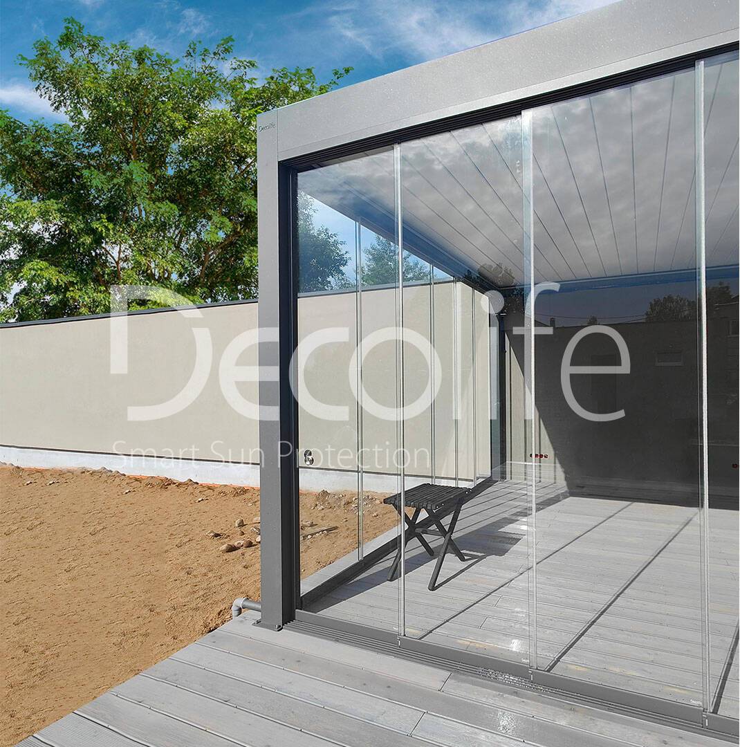 Пергола Decolife Bioclimatic B700-20С + Раздвижное безрамное остекление S100 купить для террасы, дачи, пристроенная к дому | Москва | 499