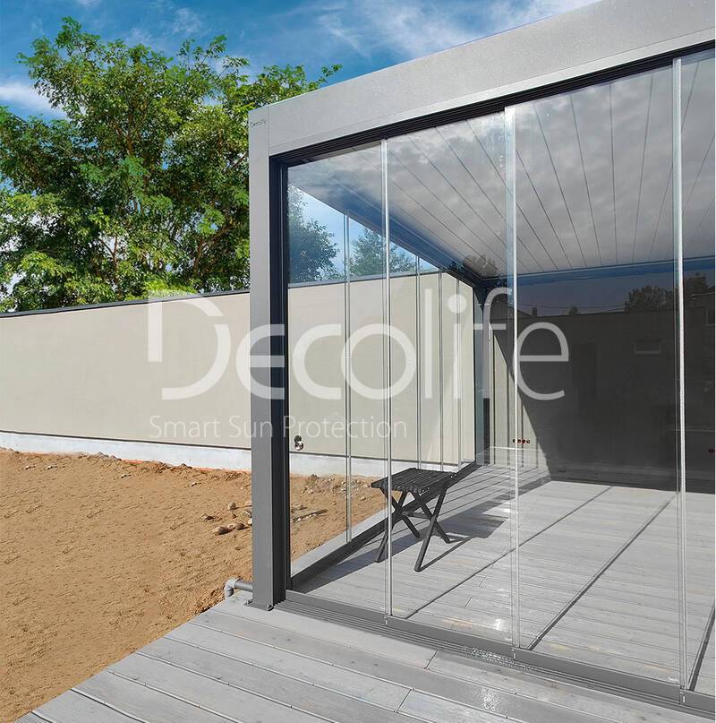 Пергола Decolife Bioclimatic B700-20С + Раздвижное безрамное остекление S100 купить для террасы, дачи, пристроенная к дому