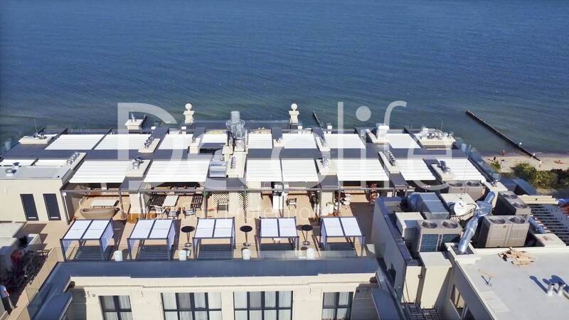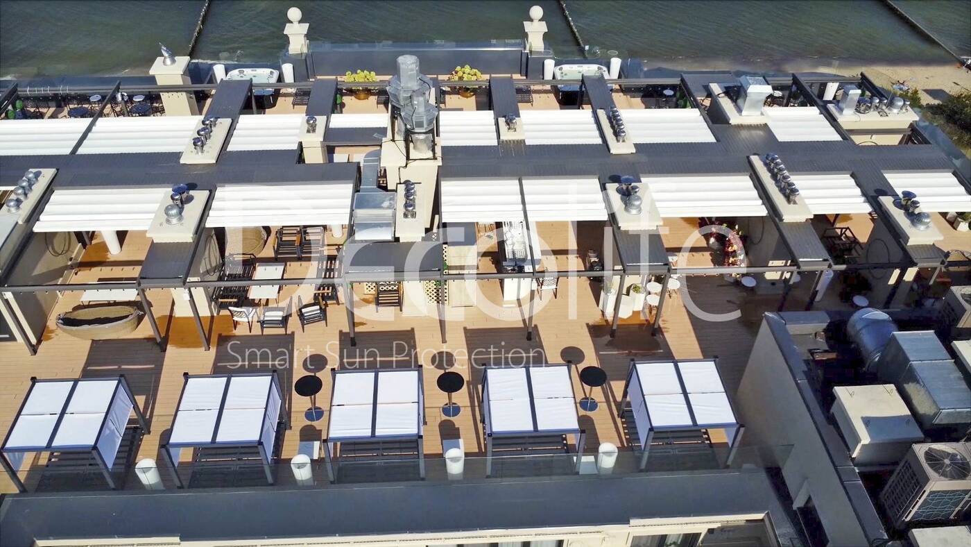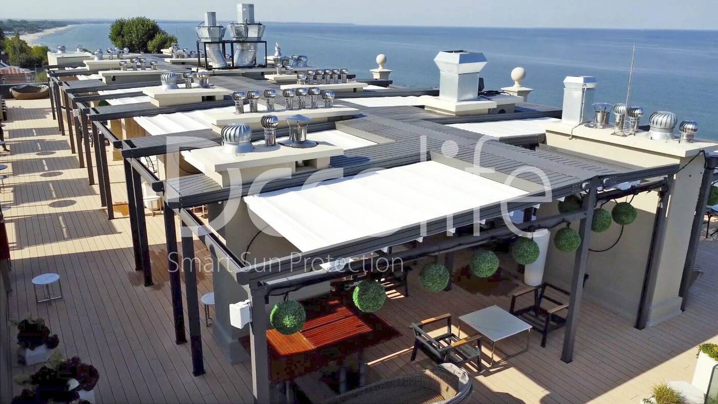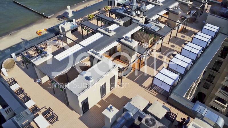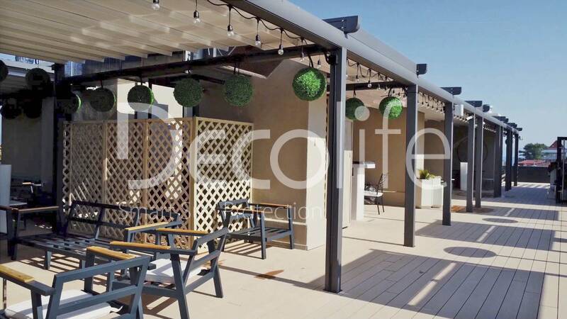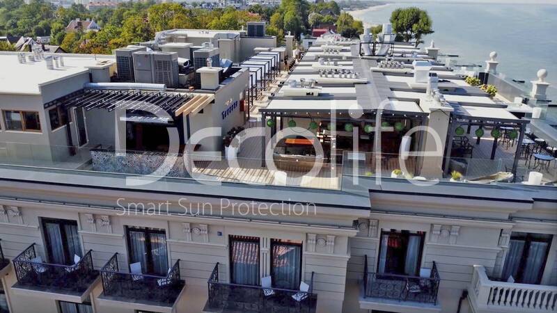 Перголы тентовые Decolife Basic & Pro New, реализовано партнером ООО "Европейские Солнцезащитные Системы" купить для кафе и ресторана