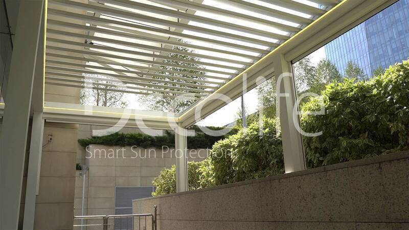 Пергола Decolife Bioclimatic B700-25С + Вертикальная система Zip 100, реализовано партнером "TENT VERTEX" купить для террасы, дачи, пристроенная к дому