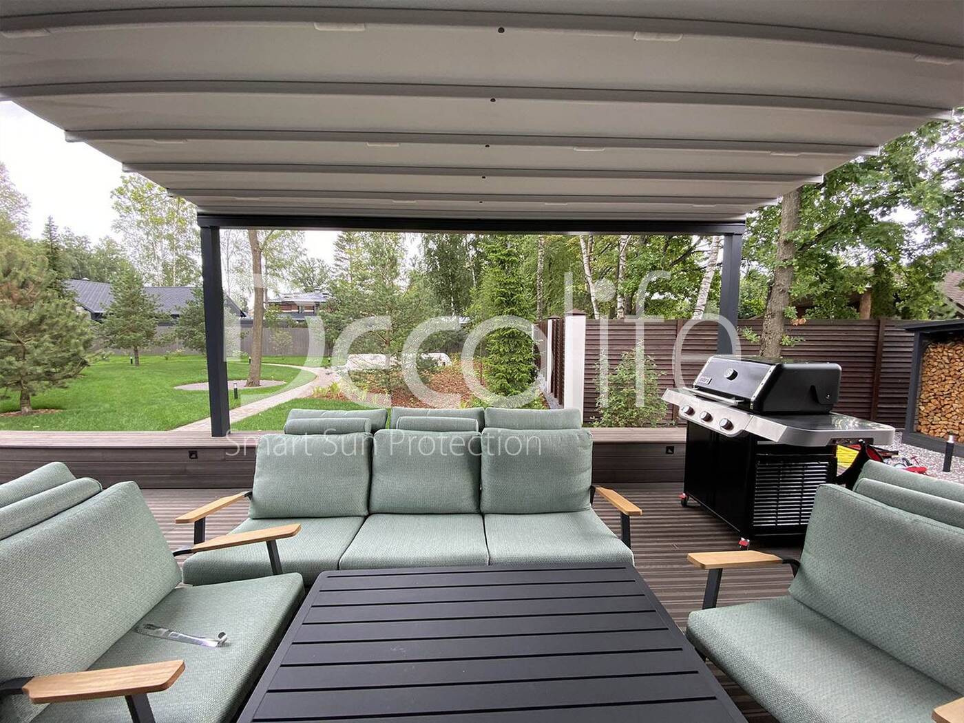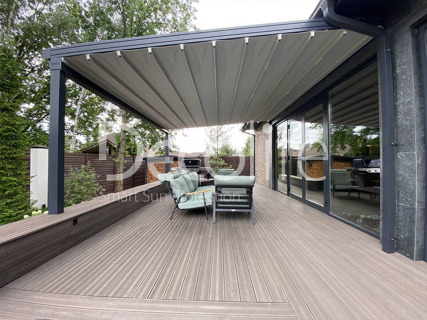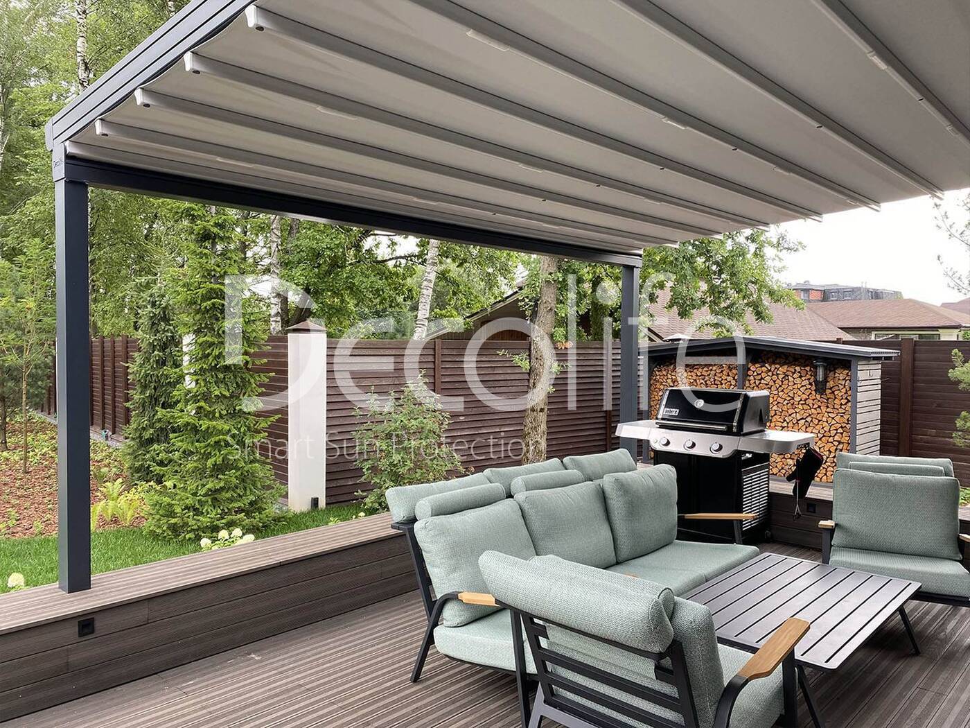 Пергола тентовая Decolife Basic&Pro New - реализовано партнером "ООО Люкс Террас" купить для террасы, дачи, пристроенная к дому