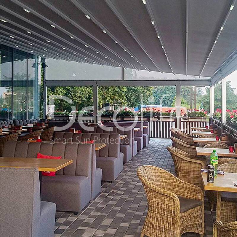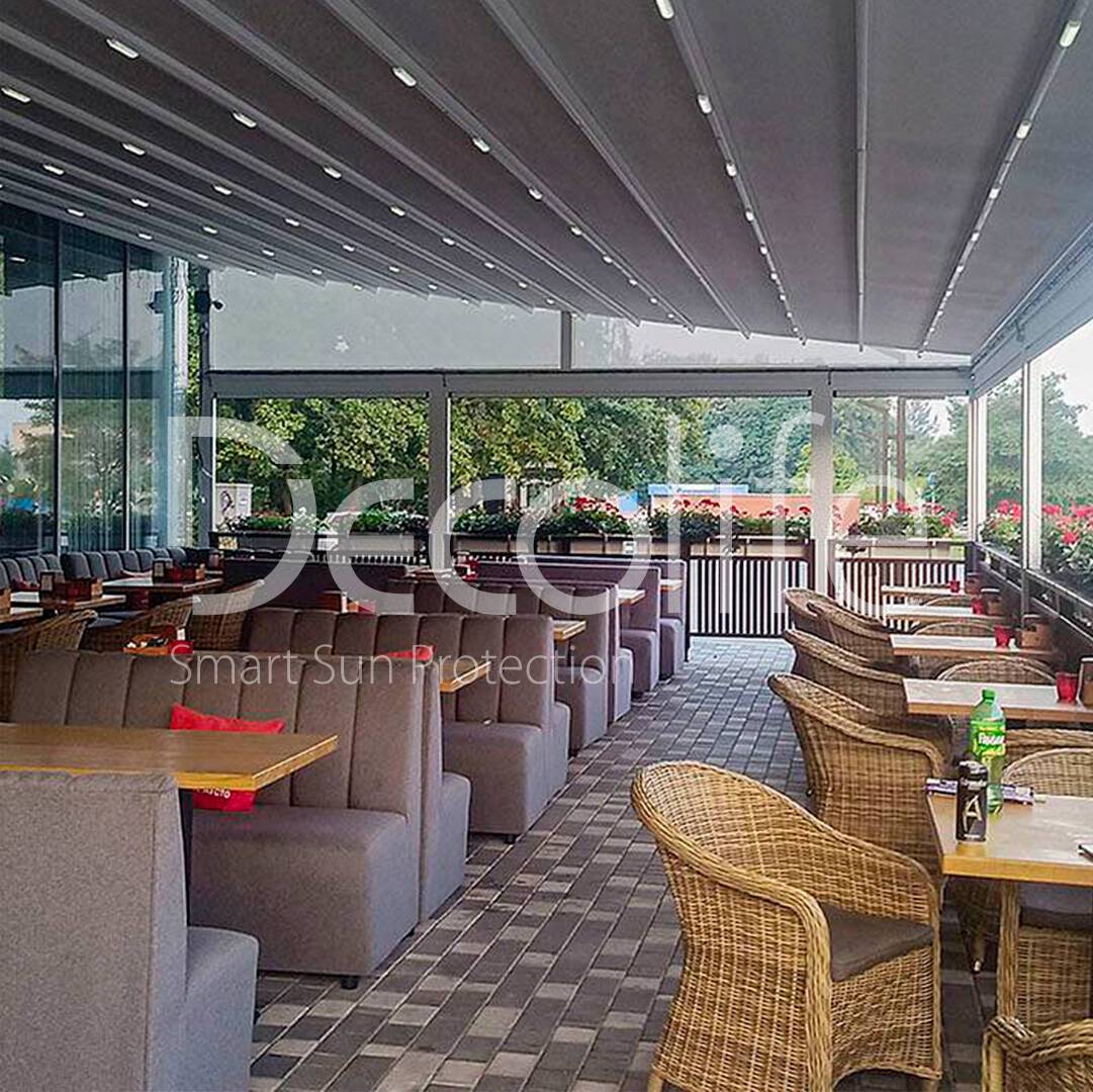 Пергола тентовая Decolife Basic&Pro New + Вертикальная система Zip 100 купить для кафе и ресторана