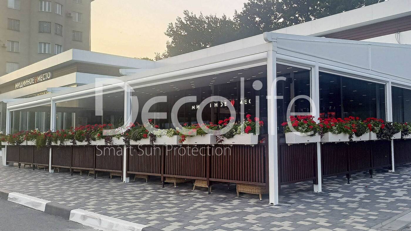 Пергола тентовая Decolife Basic&Pro New + Вертикальная система Zip 100 купить для кафе и ресторана | Москва | 555