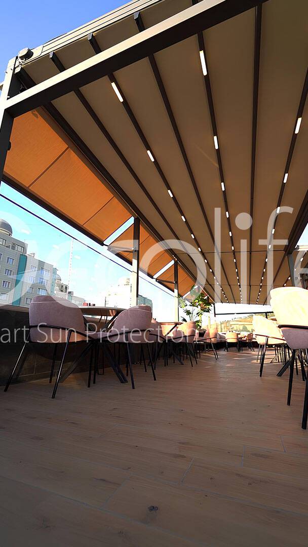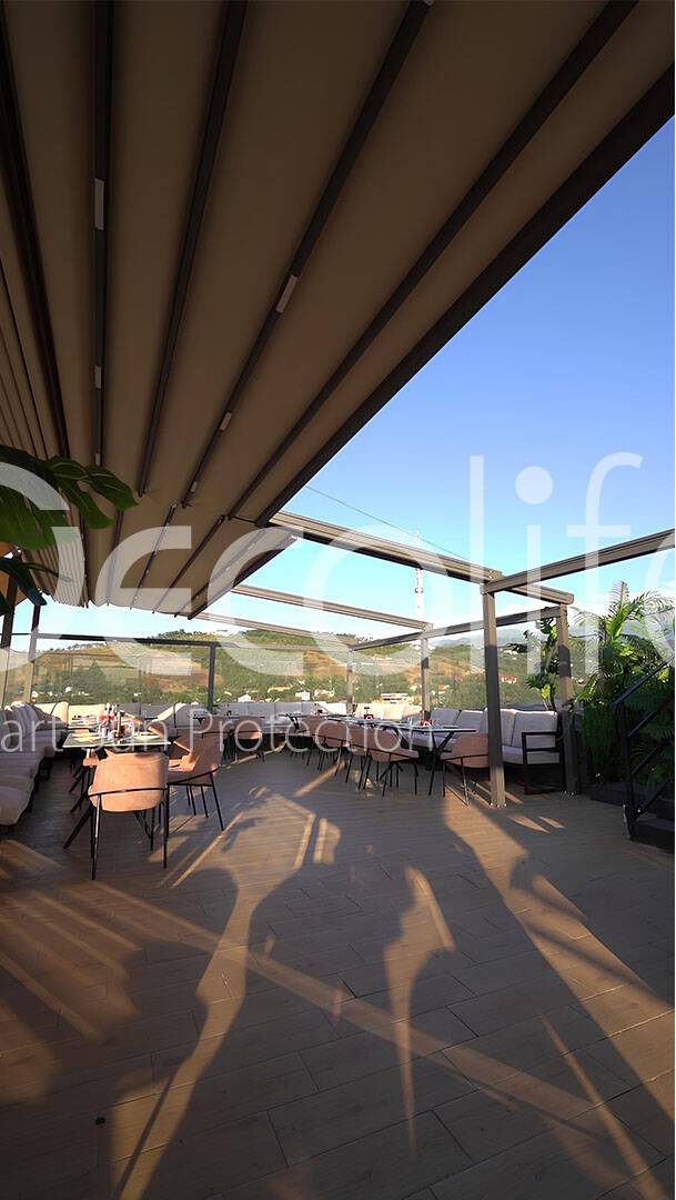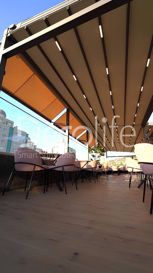 Тентовая пергола Decolife Basic&Pro New + маркизы G400, реализовано партнером "TENT VERTEX" купить для кафе и ресторана