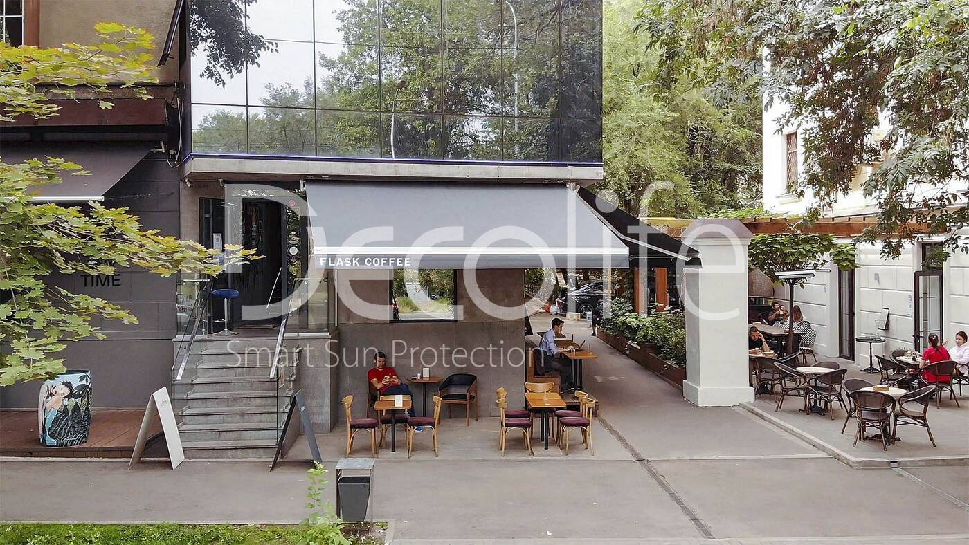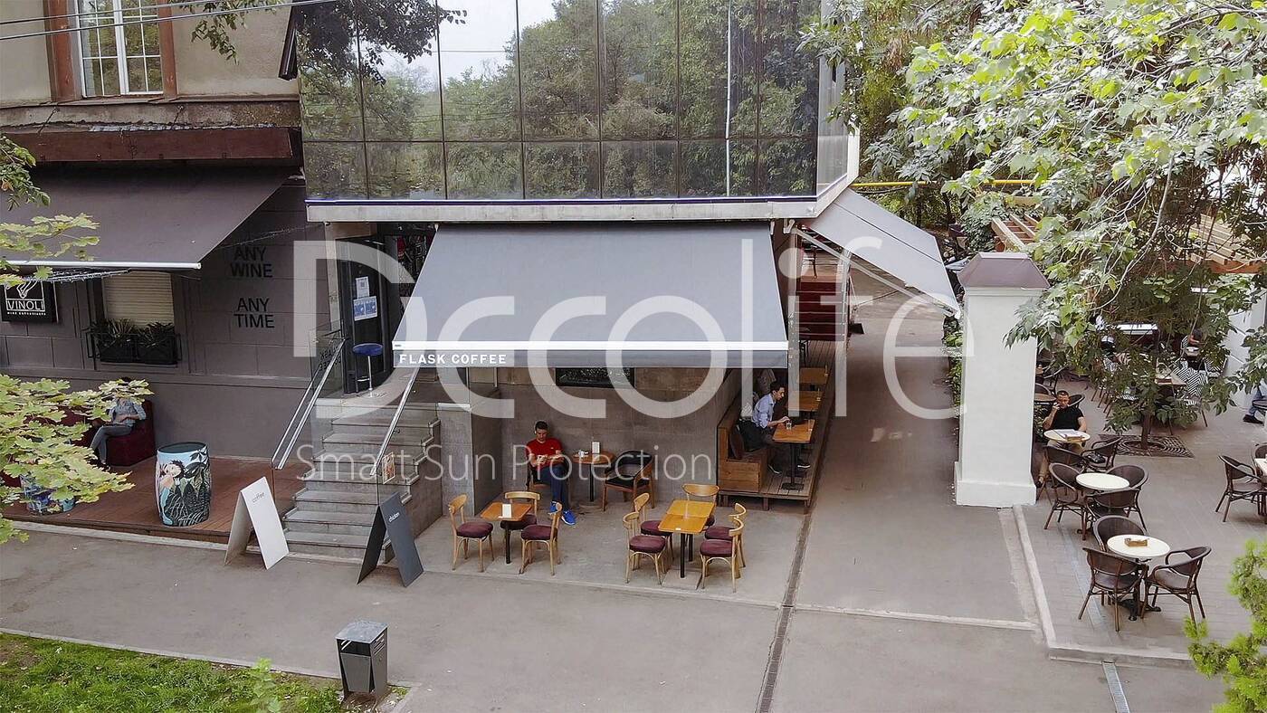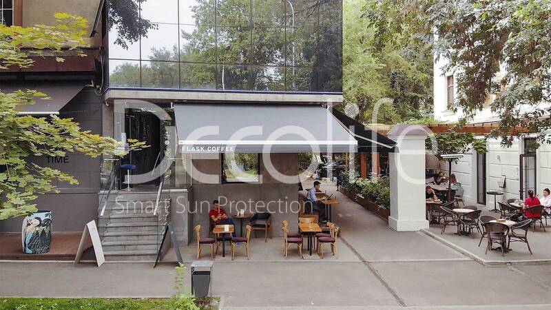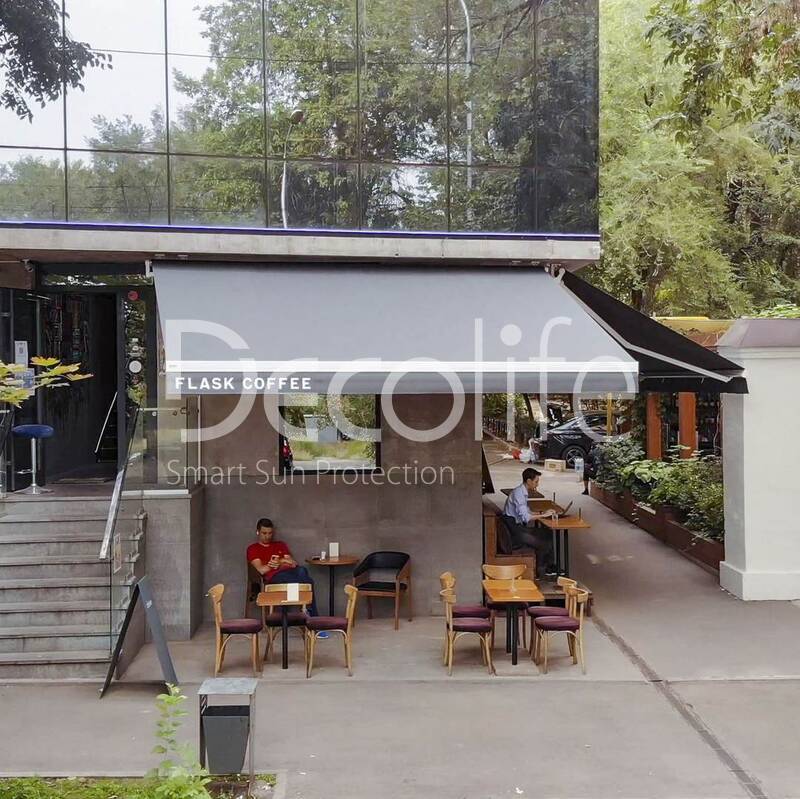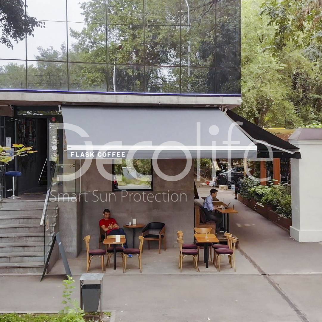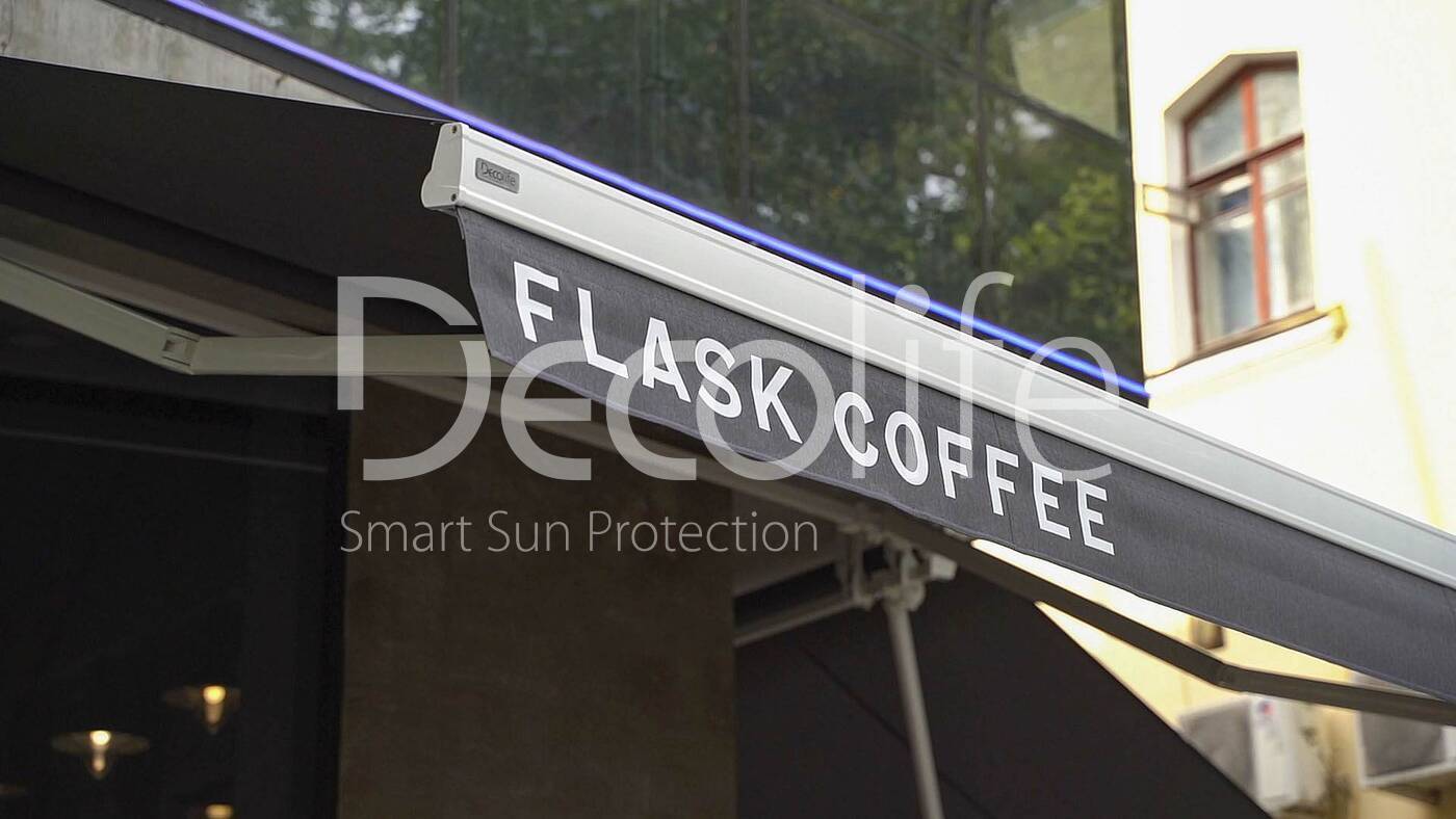 Террасные открытые маркизы Decolife G200 с флексо печатью, реализован партнером "TENT VERTEX" купить