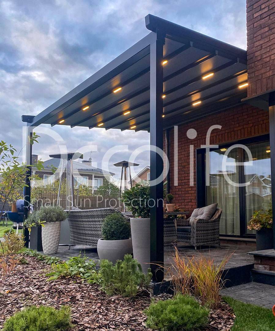 Пергола тентовая Decolife Project Light купить для террасы, дачи, пристроенная к дому