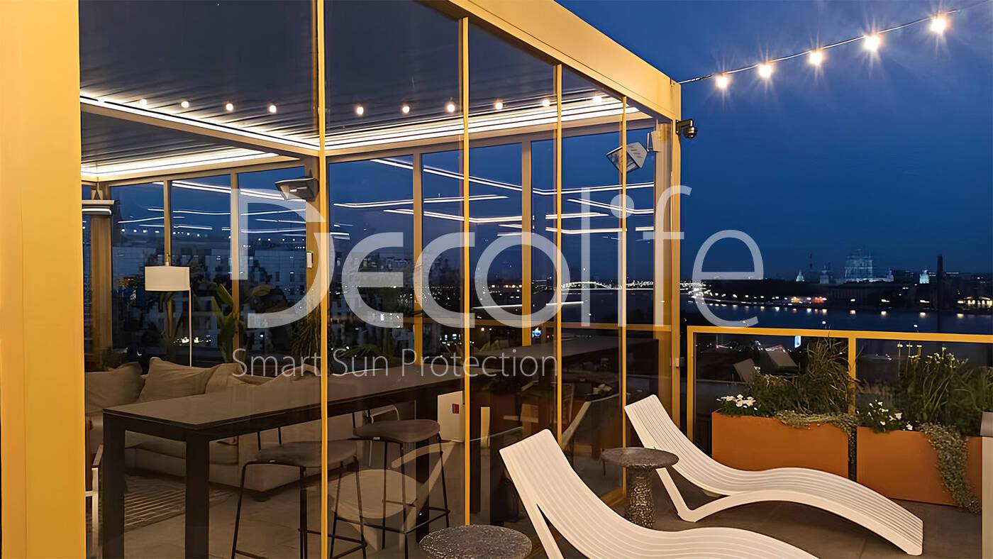 Компания Decolife является самым крупным и успешным производителем на рынке солнцезащитной продукции в России, мы специализируемся на производстве пергол и солнцезащитной продукции, включая маркизы и вертикальные системы, а также на производстве теплого и холодного алюминиевого остекления.