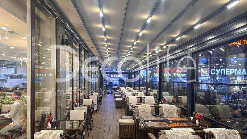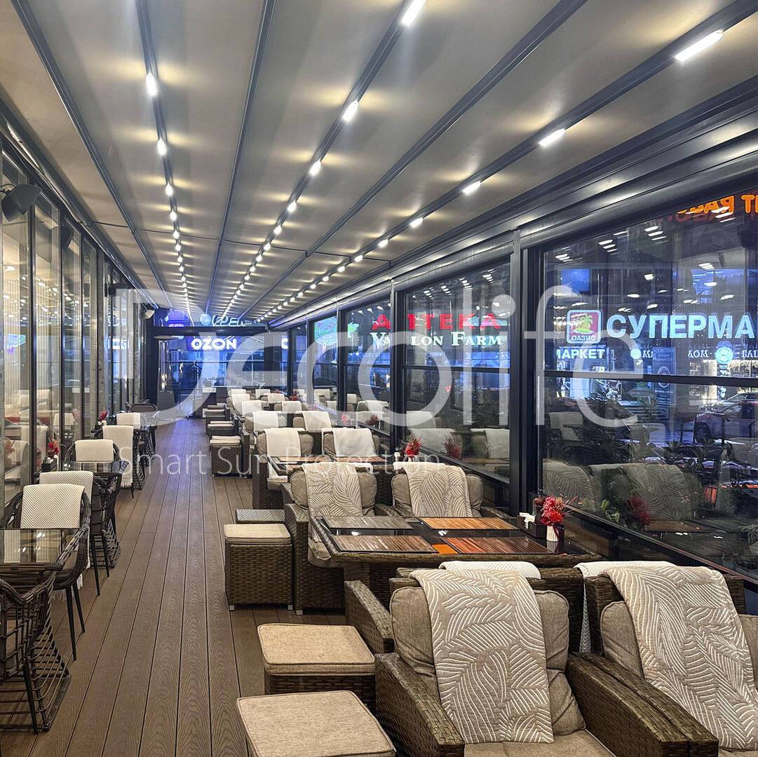 Пергола Decolife Solo Basic + гильотинное остекление W500 купить для кафе и ресторана