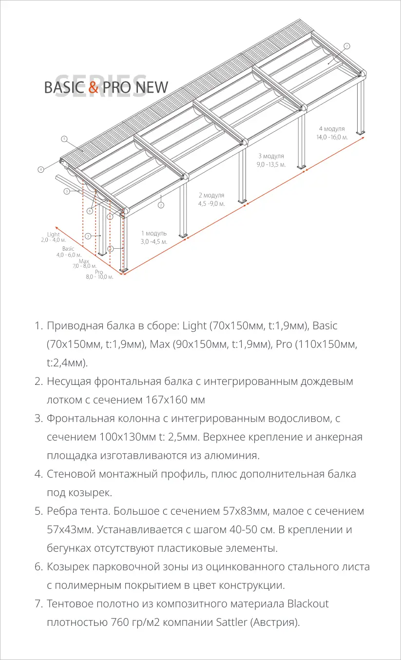 Главным достоинством перголы со складной крышей, является универсальность применения. В зависимости от настроения и погодных условий, тентовый навес можно развернуть, создав непроницаемую для жарких солнечных лучей и дождя крышу или сложить, чтобы насладиться теплом утреннего солнца и мягким летним воздухом. Pergola Basic & Pro New – изготавливается в трёх вариантах: односкатная пристенная, односкатная отдельностоящая и двухскатная отдельностоящая. Каждая модель оборудуется широким пакетом дополнительных опций, которые включают в себя встроенное LED-освещение, автоматическое управление и ИК – обогрев.