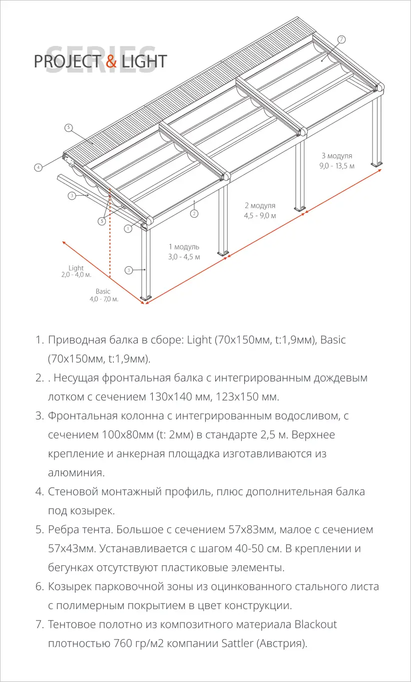Сдвижная тентовая крыша, позволяет регулировать уровень освещения и обеспечивает 100% защиту от палящего солнца и сильных ливней. Огнестойкая водонепроницаемая ПВХ ткань полностью нейтрализует воздействие ультрафиолета и понижает температуру воздуха под навесом от 7 до 10 градусов. Несущие элементы изготовлены из экструдированного алюминия с термореактивным порошковым покрытием.