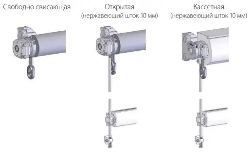 Конструкция такой шторы может быть открытого и закрытого (кассетного) типа. В открытой системе ткань движется по вертикальным направляющим тросикам, а в кассетной – по специальной штанге из алюминия в кассете. Чтобы полотно было ровно натянуто, в нижней части конструкции используется утяжелитель.