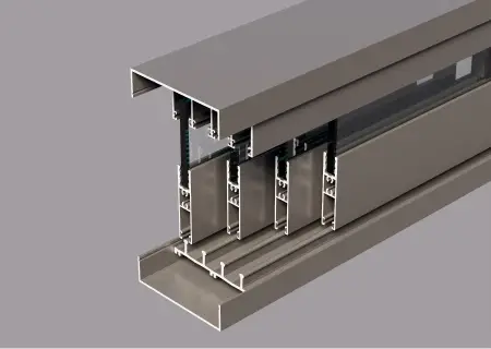 Представлен в двух вариантах сдвижных дорожек на 4 и 6 стекол и соответственно 4/8 и 6/12 раздвижных панелей. Дорожки опираются на нижний несущий рельс с помощью специального алюминиевого профиля, движение осуществляется с помощью антифрикционных роликов. Совместима со всей линейкой пергол Decolife.