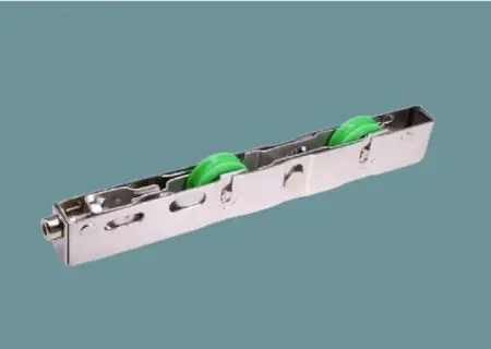 Элементы остекления Закаленное стекло толщиной 10 мм;   Стекольный алюминиевый профиль;   Межстекольный уплотнитель из эластичного нейлона;   Щеточный уплотнитель;   Антифрикционные боковые вставки;   Каретки из нержавеющей стали;   Механизм блокировки;   Двустороняя ручка из нержавеющей стали;   Направляющая шина;
