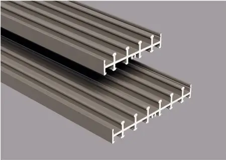 Рекомендуемая высота панели 3 метра, максимальное количество стеклянных панелей 12 шт. Представлен в двух вариантах сдвижных дорожек на 4 и 6 стекол и соответственно 4/8 и 6/12 раздвижных панелей. Дорожки опираются на нижний несущий рельс с помощью специального алюминиевого профиля, движение осуществляется с помощью антифрикционных роликов. Совместима со всей линейкой пергол Decolife.